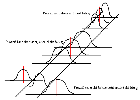 Eine der wichtigsten Voraussetzungen für eine sichere Produktion nach einem Produktanlauf, sind stabile und fähige Prozesse. cp und cpk-Werte werden für die Regelkartentechnik zur Errechnung der Eingriffs- und Warngrenzen angewandt, um eine gewisse Sicherheit für einen Prozeß zu erhalten.