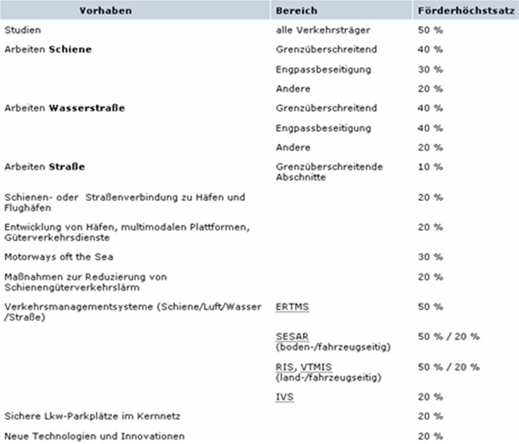 Connecting Europe Facility - mögliche Förderhöchstsätze
