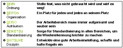Japanische 5S-Methode zur Etablierung von Standards