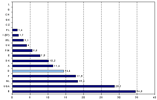 Trotz der Lohnkostenzurückhaltung der letzten beiden Jahre schneidet Deutschland auch bei der vergleichenden Analyse von Arbeitskosten und Produktivität schlecht ab (Rang 16). Hierfür sind vor allem die überdurchschnittlich hohen Personalzusatzkosten verantwortlich. Im direkten Vergleich ist Deutschland mit 41,50 Euro pro Stunde teurer als die durchschnittliche Arbeitsproduktivität aller 18 betrachteten Länder, die bei einem Wert von 38 Euro/Std. liegt.