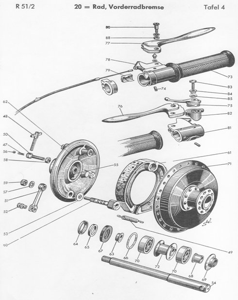 (Grafik: Auszug aus der BMW-Ersatzteilliste R51/2 von 1960) Die Zeit schafft Probleme bei der Elektronik